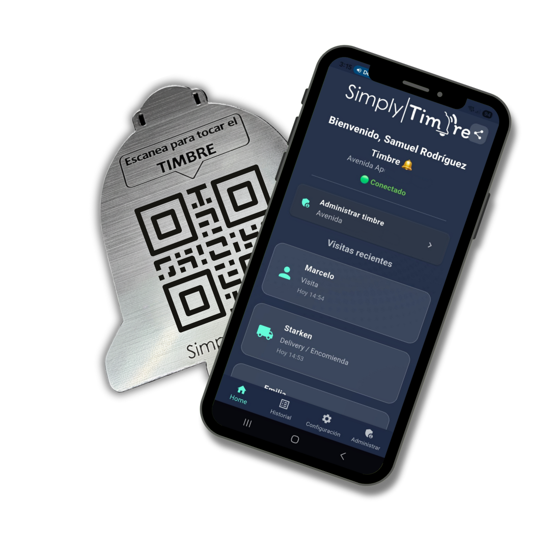 Con tu compra recibes una Licencia de Activación SimplyTimbre para activar 1 timbre inteligente en la app, más tu placa física o imprimible con código QR único grabado por láser.